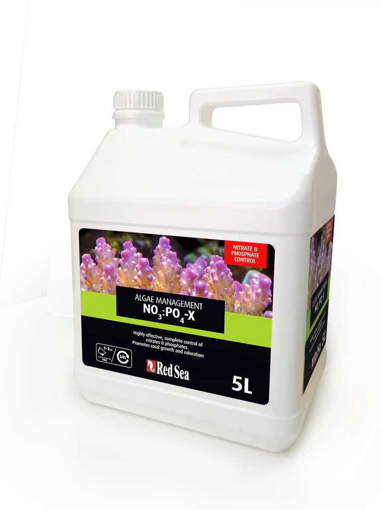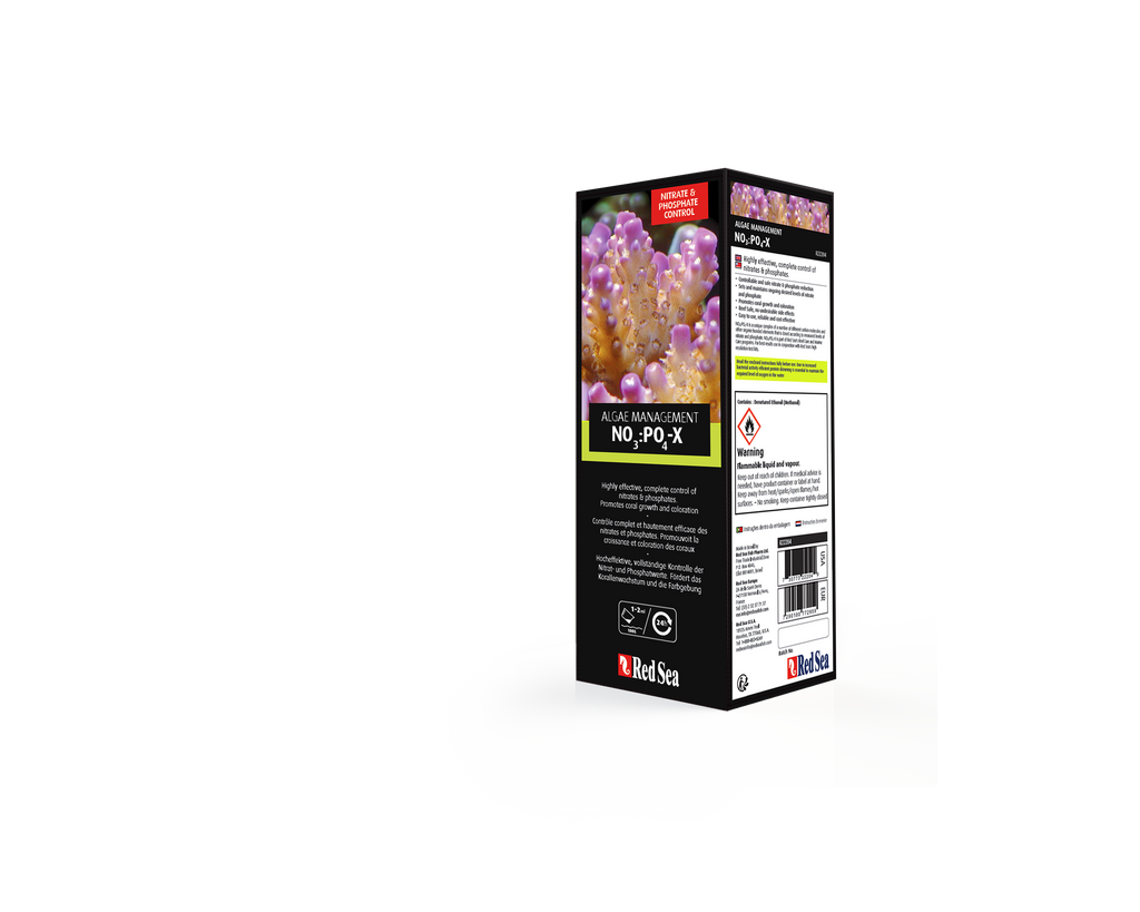 Red Sea's NO3:PO4-x is a part of their Algae Management Program that combines highly effective, controlled biological reduction of nitrates and phosphates for all reef and marine aquariums. Between testing and dosing the proper additives, nutrients in the aquarium can be easily managed with no undesirable effects. NO3:PO4-x helps promote naturally occurring nutrient-reducing bacteria that already exist in your aquarium.
